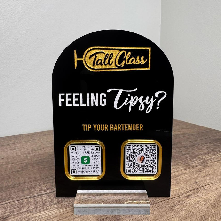 Mobile bartenders, elevate your setup with this stylish acrylic “Tip Your Bartender” sign! Sleek, durable, and event-ready — it’s the perfect touch to boost tips and add personality to your bar. Customizable to match your brand or event vibe!