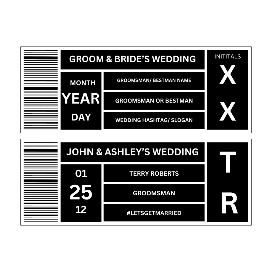 Bride and Groom's Name, Name of person, Wedding Date, Wedding Role, Initial, Slogan/Location